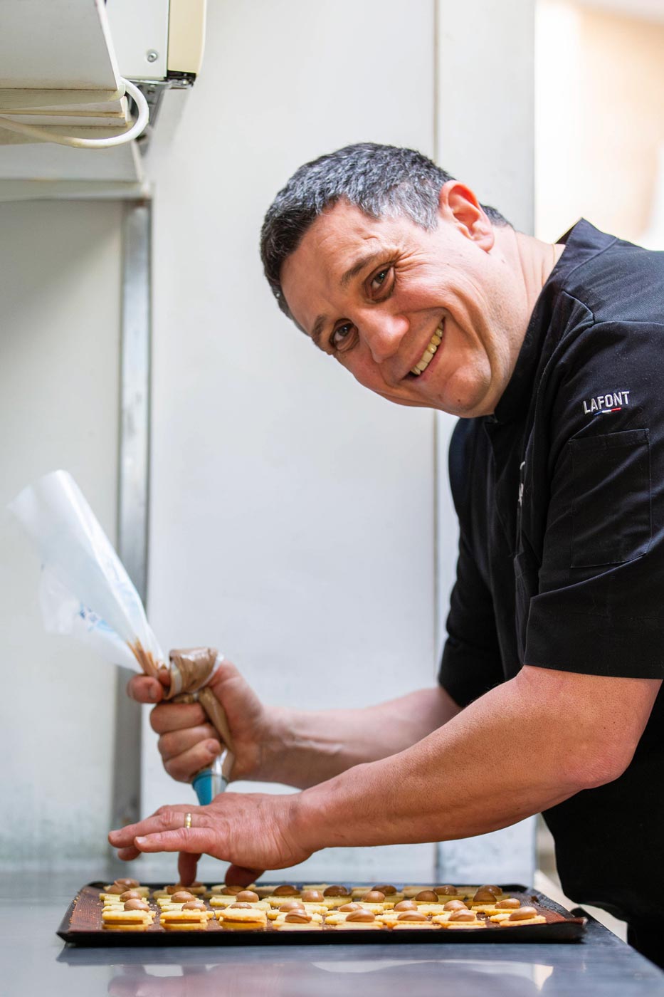 Derrière, au cœur de notre laboratoire, Alain et ses apprentis imaginent de nouvelles recettes et préparent, dans le plus grand respect des normes sanitaires, vos gourmandises préférées. Passionné comme il est, Alain aime transmettre ses différents savoir-faire à la jeune génération.